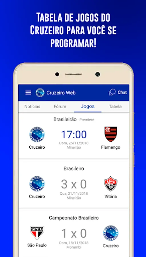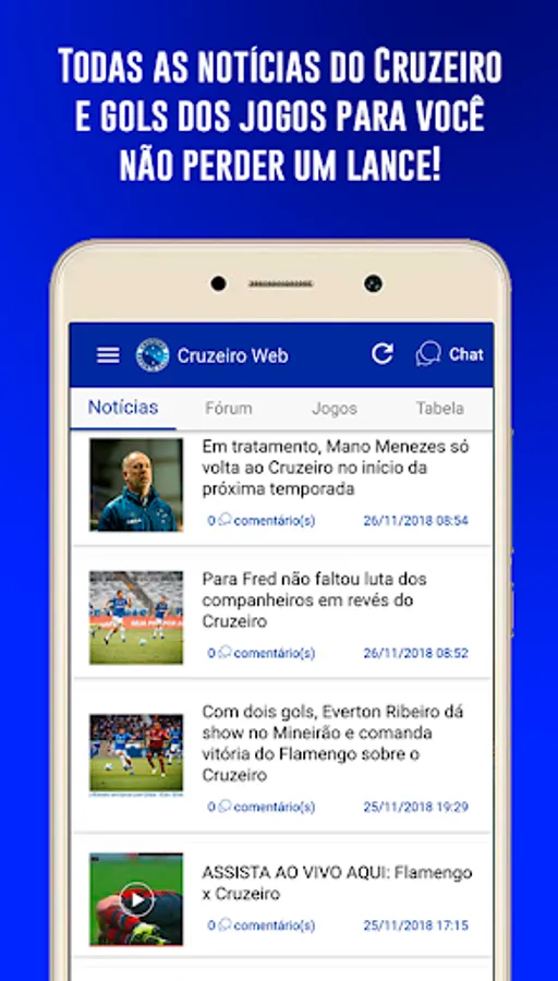 The official app of the website CruzeiroWeb.net has arrived. In the App you find all Cruzeiro news, hirings, rumors, team rosters, match schedules, and live broadcast of team matches.