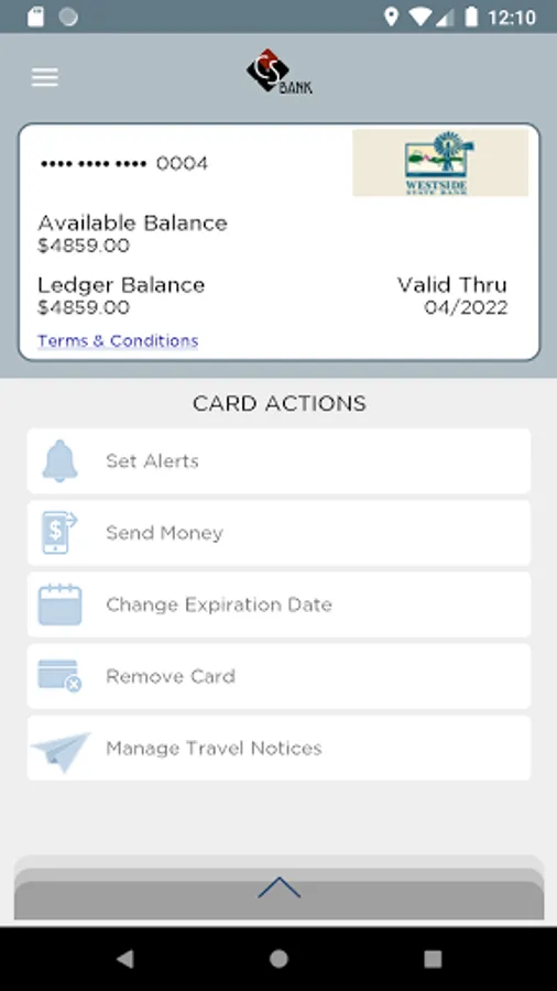 CS Bank Card Manager is the best place to manage your debit card. CS Bank helps protect your debit card by sending you alerts when your card is used so you can quickly detect unauthorized or fraudulent activity on your account. Users have the option to receive alerts via text or email. You can also check your account balance anytime, turn your card off and on, send money to other users and find nearby ATMs.