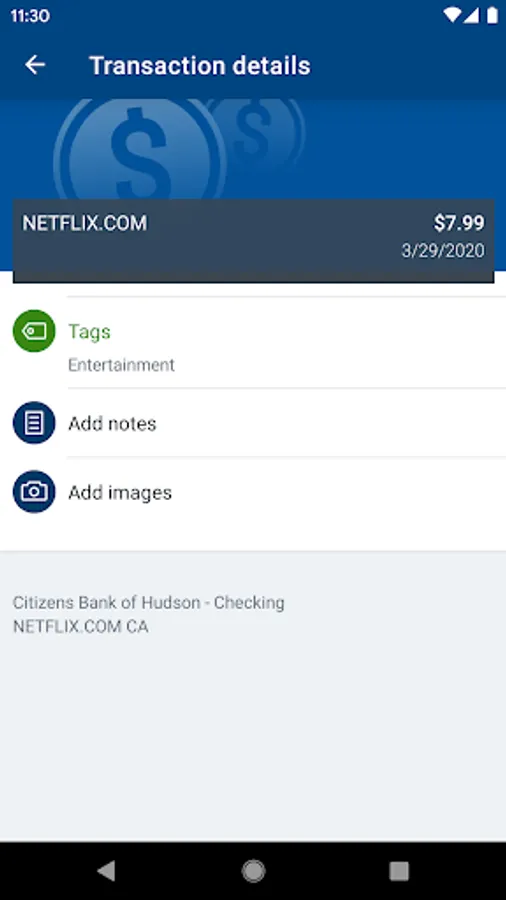Keep your transactions organized by allowing you to add tags, notes and photos of receipts and checks.