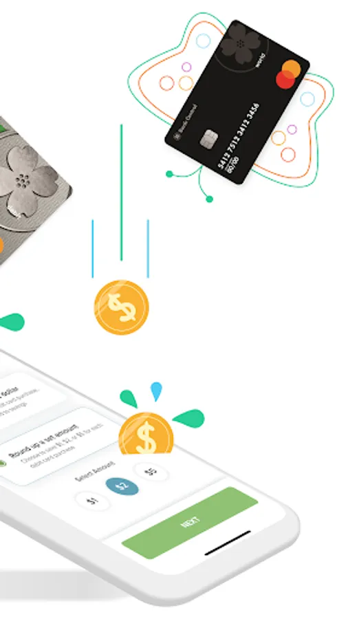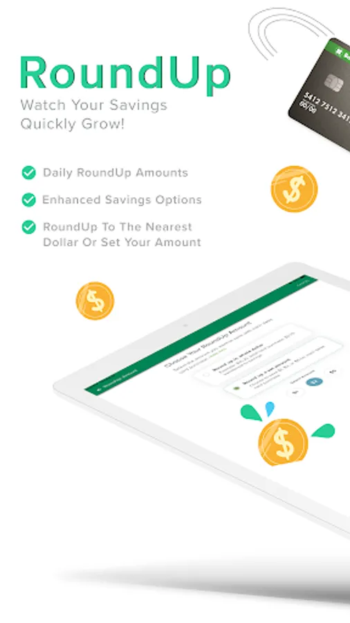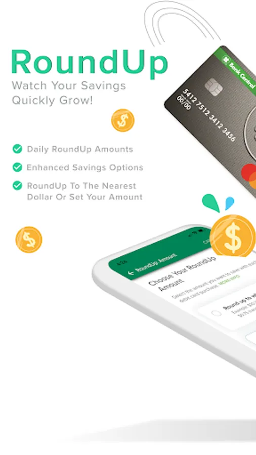 - Automatically round up purchases from your checking to savings account with every debit card transaction.