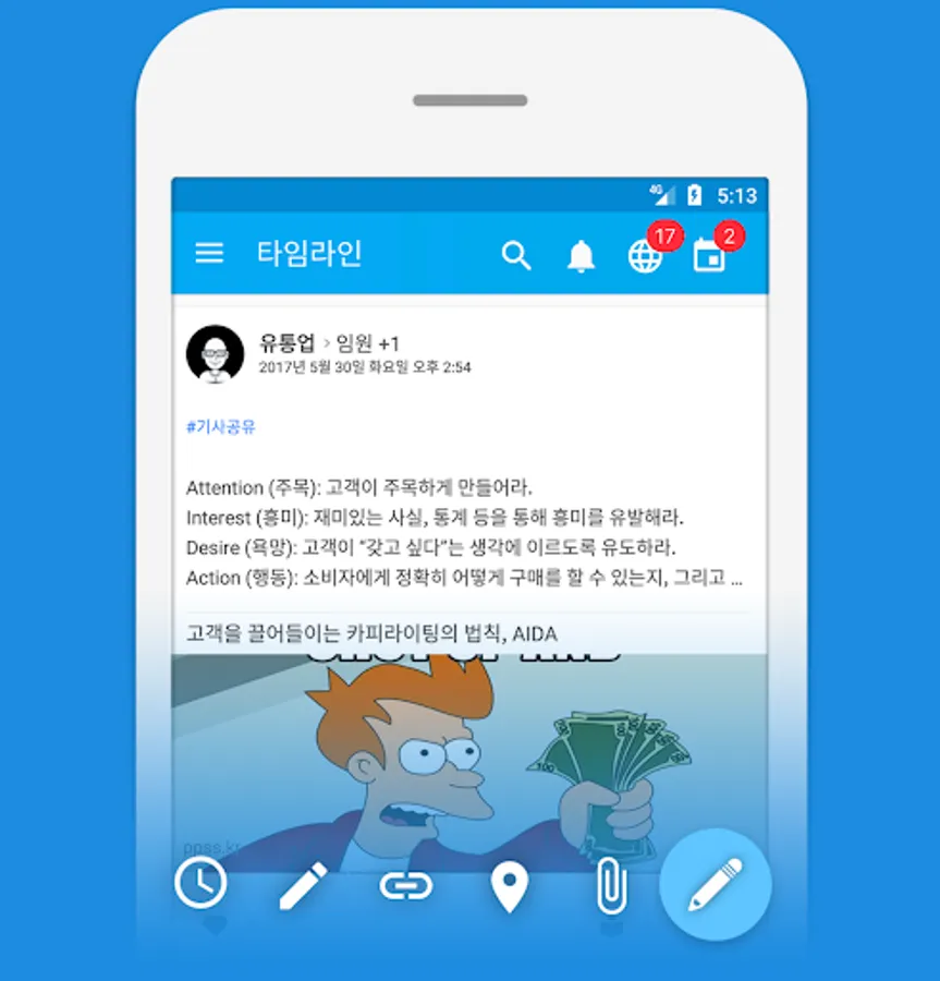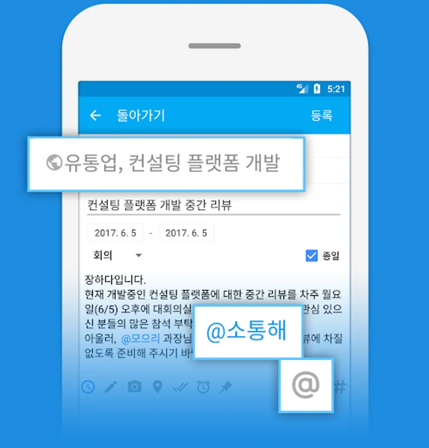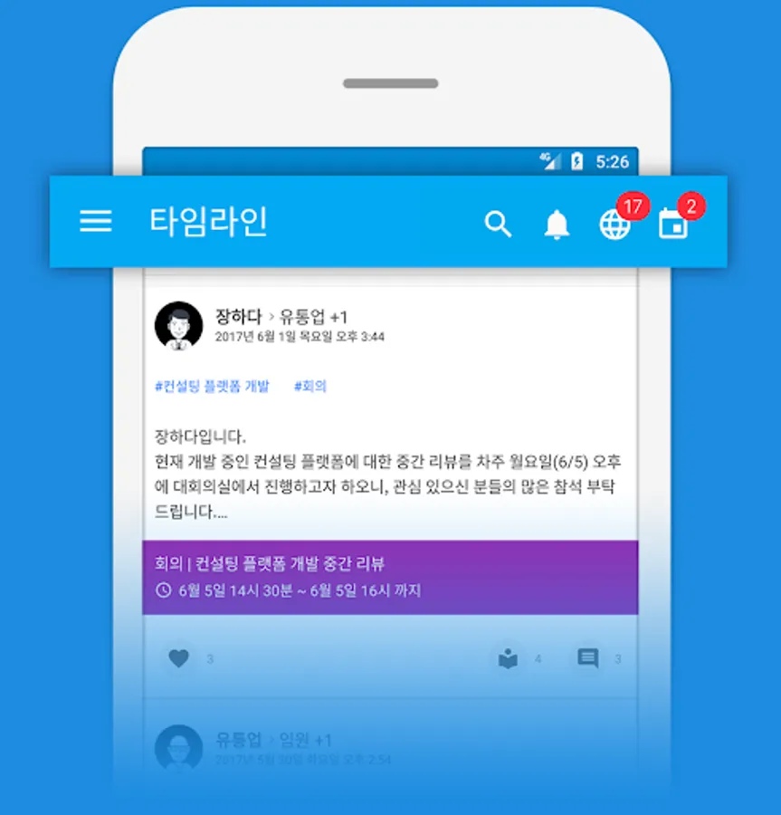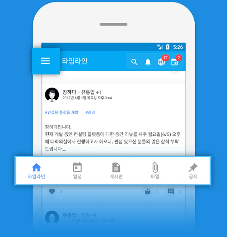 Feeds, calendar, files, surveys, position, links, favorites features, as well as, external mail interworking or plug-ins, instant messaging, project management tools (Kanban board), etc. provided by integrating all the necessary functions for team collaboration, one tool The.