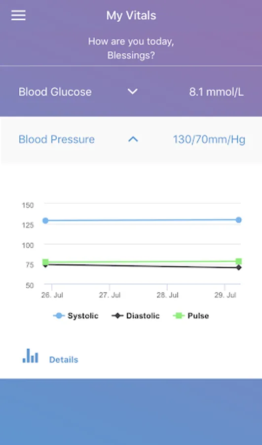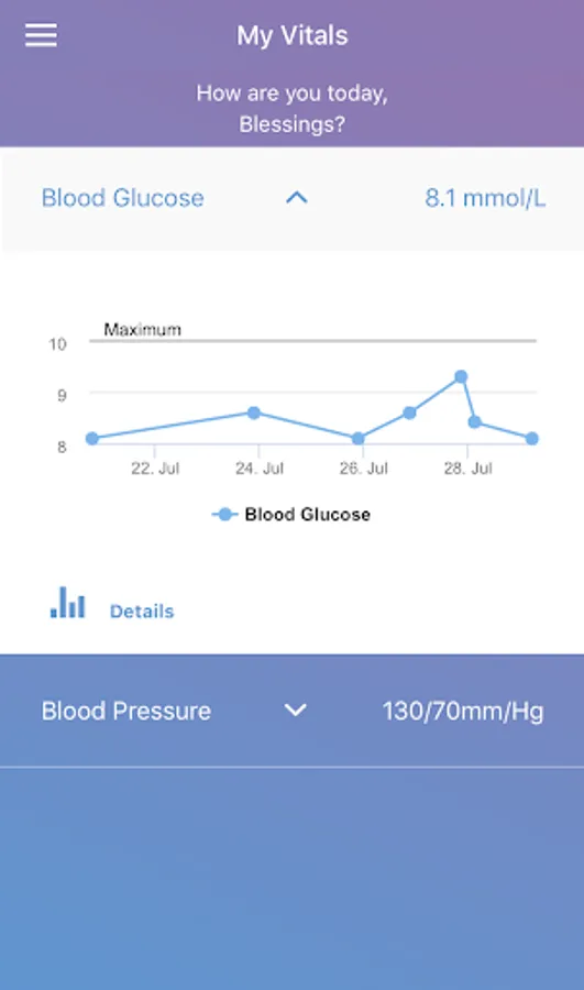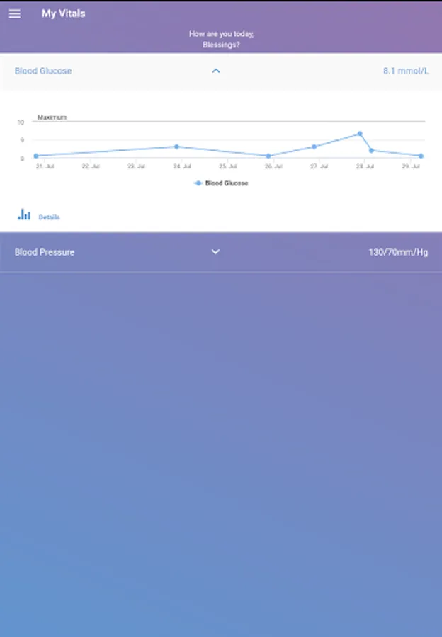 The application syncs with connected blood glucose and blood pressure measuring devices.