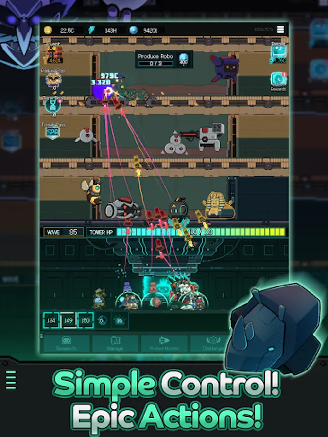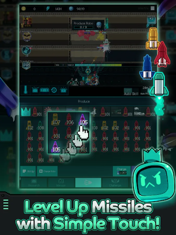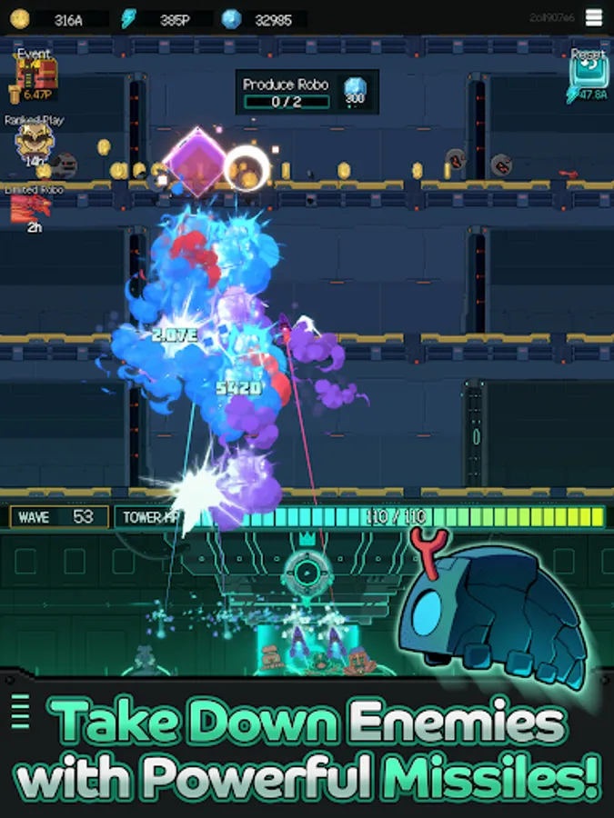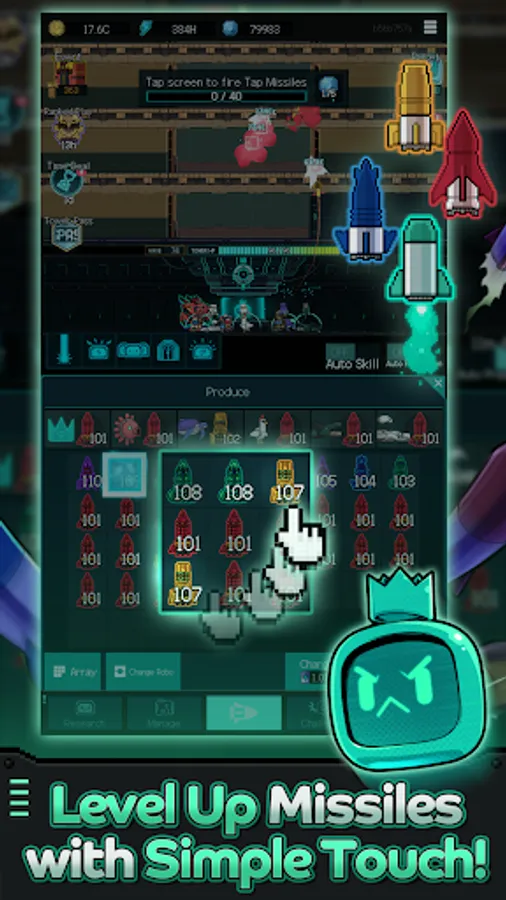 Level up missiles with a simple touch and place/upgrade Robos strategically!