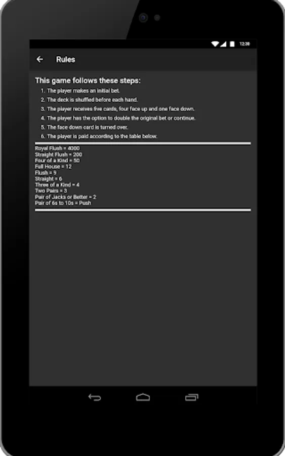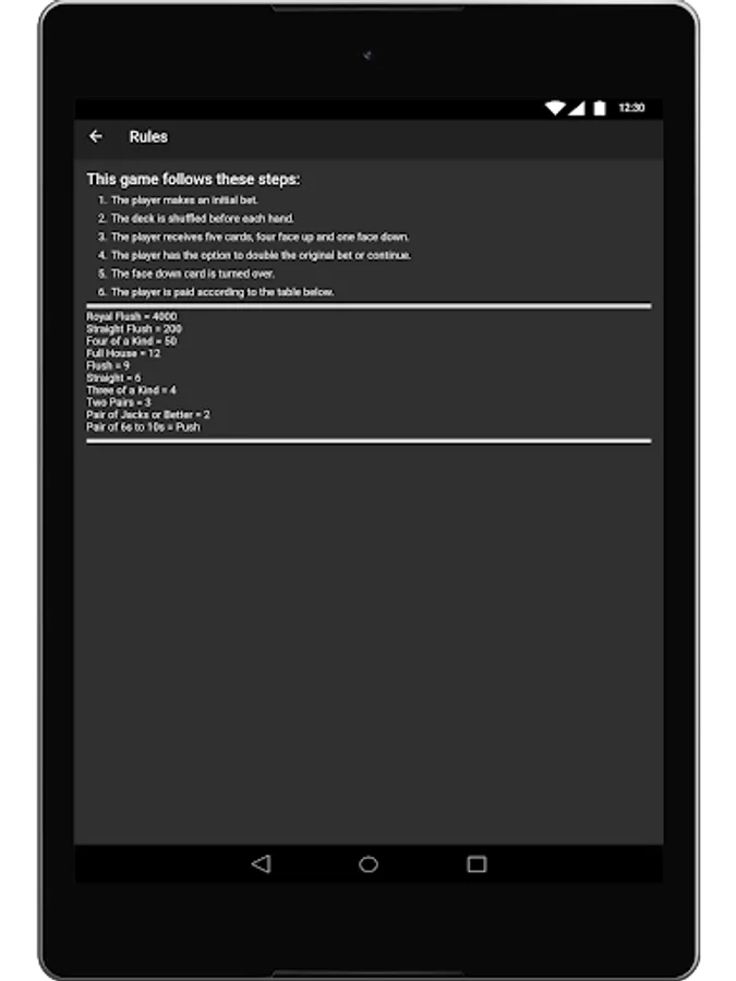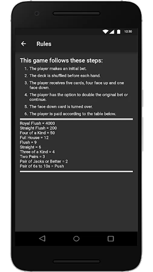 Enjoy tons of fun on a card game with odds and payouts that match casino machines.