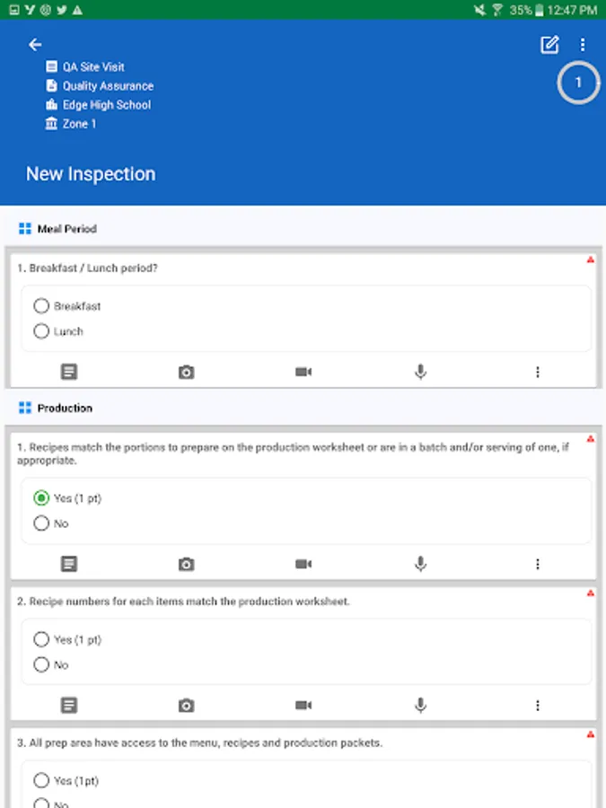 PrimeroEdge Inspections provides K-12 food service operations a better way to perform local site audits and inspections in a smart, efficient, paperless approach. The form template builder allows for an easy and robust creation of new or existing questionnaires, standard operating procedure audits, equipment checklists, and any other areas of review. Questions can be assigned scoring values to help capture varying levels of weighted importance so that results provide quick, at-a-glance feedback before diving into the details of each observed area. Inspectors experience the mobility and ease-of-use with an app-based tool that allows for simple input of observations, findings, and additional supporting information. Leverage mobile devices to take pictures, video, voice recordings, or simple notes to attach as supporting documentation when performing an inspection. While inspectors focus on the work of on-site observation, administrators have access to consolidated dashboards and reporting to see the big picture. For better oversight and accountability, you can easily configure a tiered approval process to ensure each inspection is reviewed by a central administrator and given an official sign off. Experience greater operational standards with the efficiency and accountability of PrimeroEdge Inspections.
