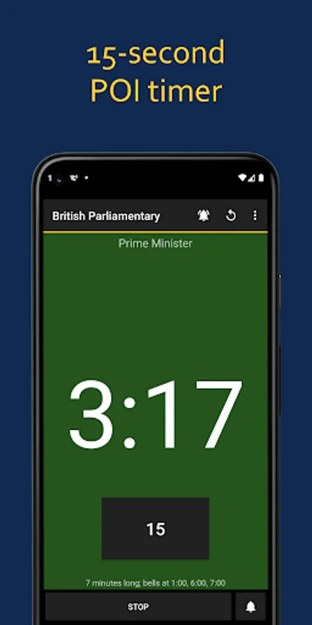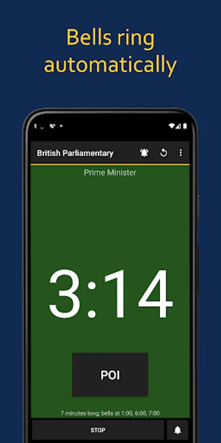 Let Debatekeeper take the hassle out of timekeeping! It will sound bells automatically at the right times, or it can vibrate and/or flash your screen as quieter cues, allowing you to focus your attention on the debate.