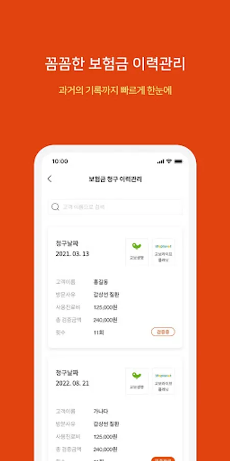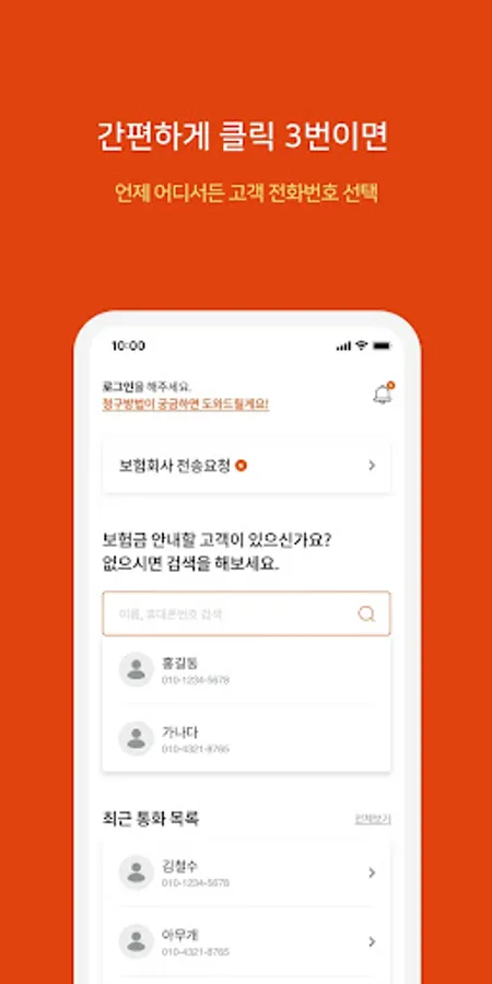 - 고객의 연락처를 클릭, 청구유형을 선택하면 10초만에 여러 보험사 청구서 작성 완료