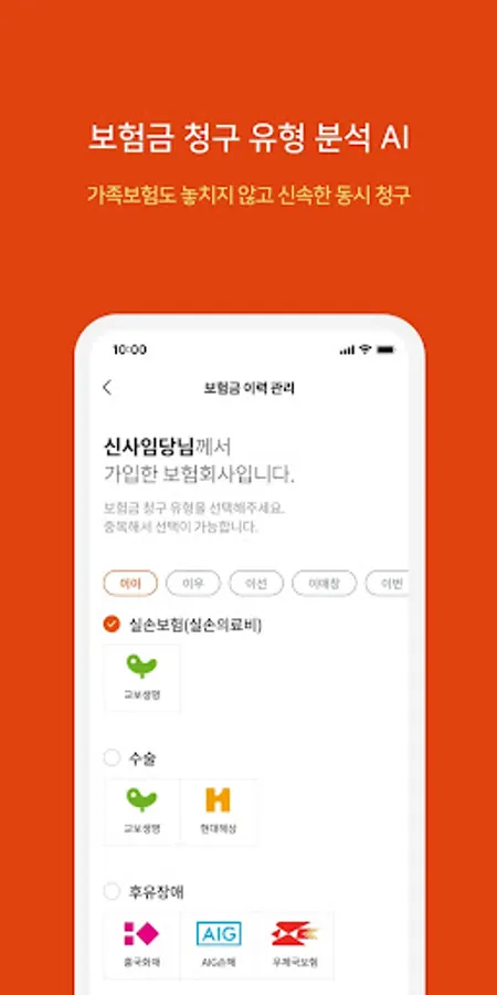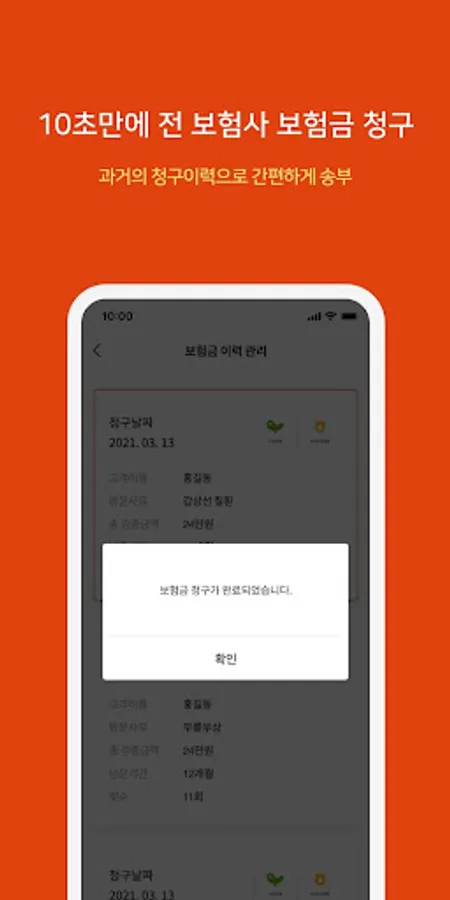 - 과거 보험금 청구한 이력이 있으면 2번 클릭으로 청구 완료