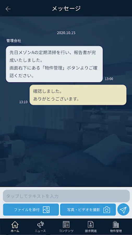 You can check documents such as notifications from the management company, bills and reports on the app.
