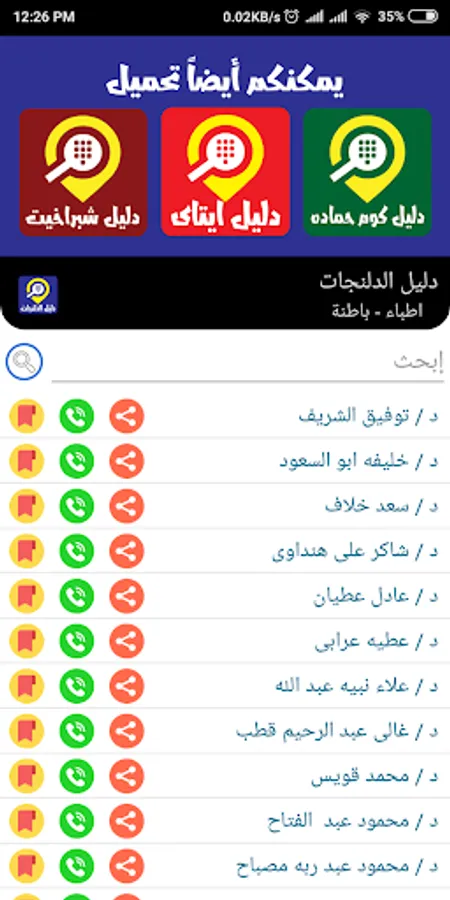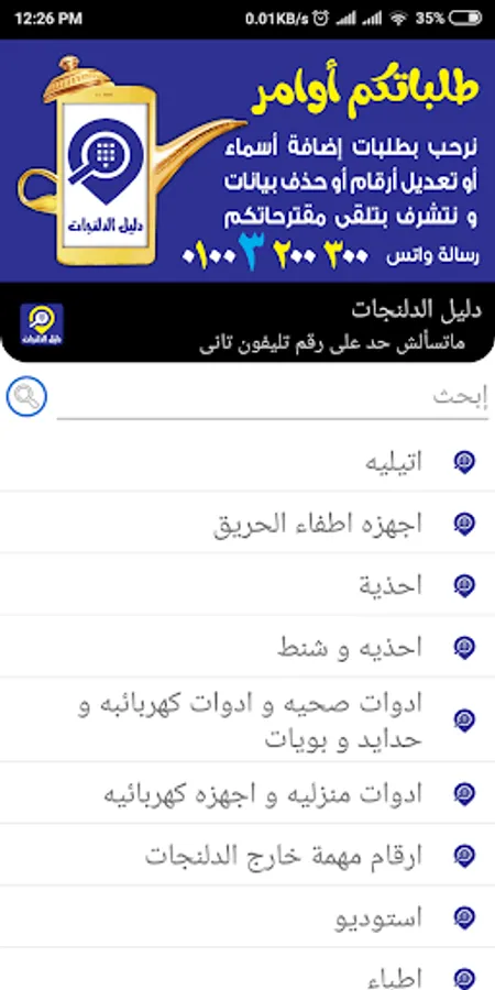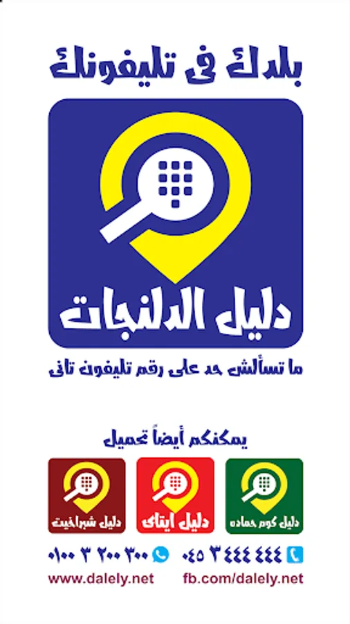 Application Application The directory of Dalangat "Your country in your phone" a small area works without Net All phones are divided by professions and easy to download, search, contact and participation and there are some details such as address and link Elvis and the guide Minio restaurants and important news and offers and welcome suggestions and updates are constantly send your name and number and domain to add Watts 01002300300 You can also download (guide com Hamada - Etai guide - Shubrakhit directory) by searching them in Google Play Store - 5 Stars in the store and share the guide to benefit