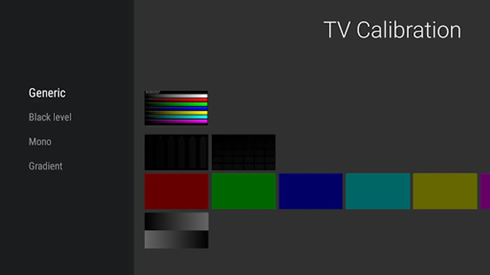 Displays different patterns so you can quickly adjust or check your TV's brightness, contrast, colors or overscan.