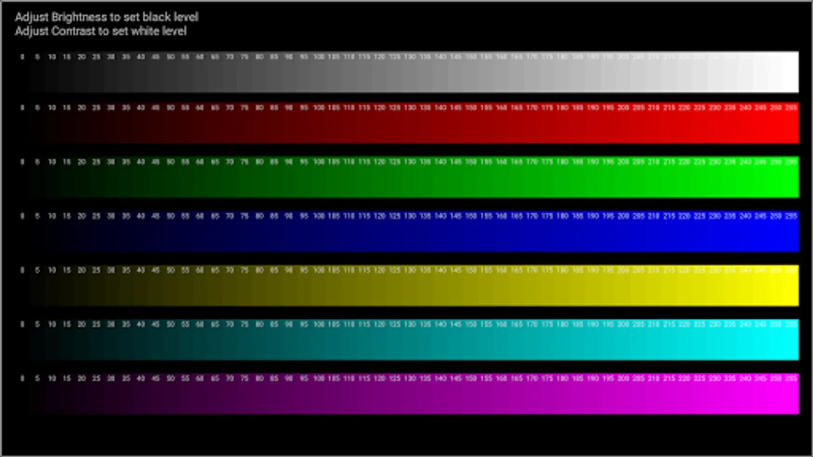 - choose the black bars model, set the brightness to minimum and increase until you can see the differences in black.
