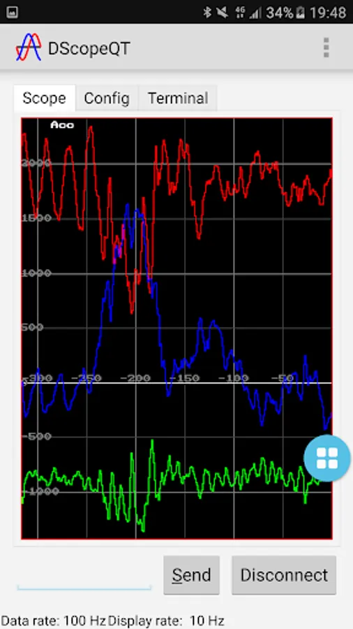 A typical usage example is the real-time display of data coming from sensors, e.g. interfaced with a serial, RFCOMM, USB or TCP connection.