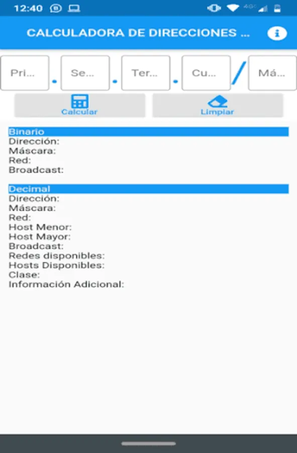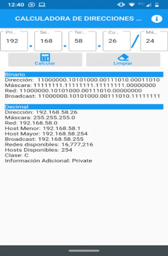 The IP calculator consists of a tool, which by means of given values makes a series of calculations and shows us the results for obtaining network values.