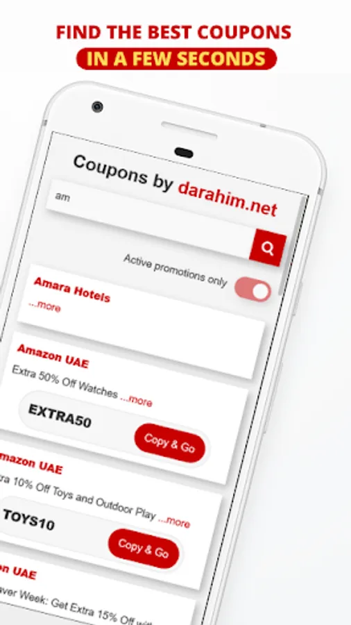 It’s very simple to use, just write the name of the store you are looking for, choose an offer, copy the coupon and apply at the checkout. Same product but cheaper! Just install Darahim Coupon Finder and start saving big with ease - It's Free!