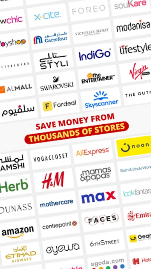 Get the easiest Coupons Finder APP in the Middle East and save up to 90% on your favorite online stores like Amazon, Noon, Ounass, AliExpress, GAP, Bath & Body Works, Namshi, Nayomi, Mumzworld, NowNow, PatPat, Yodawy, Splash Fashions, and much more.