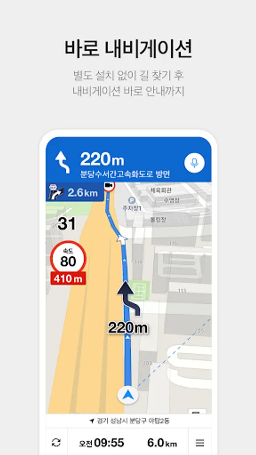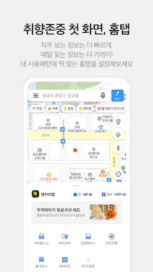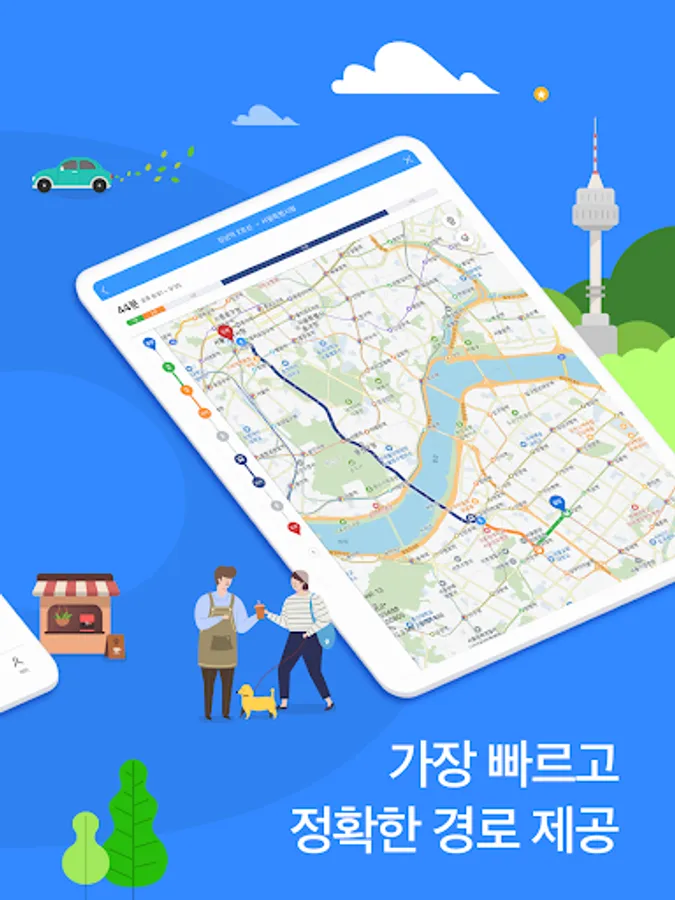 No need to install a separate navigation app. When you search for a route, KakaoMap will give you navigation directions right away.