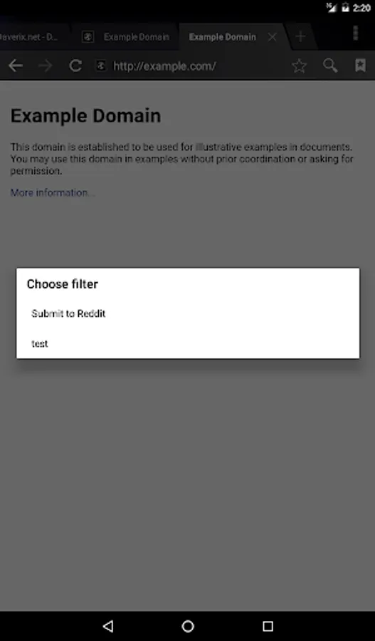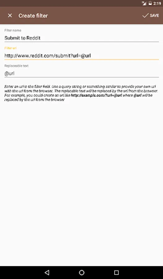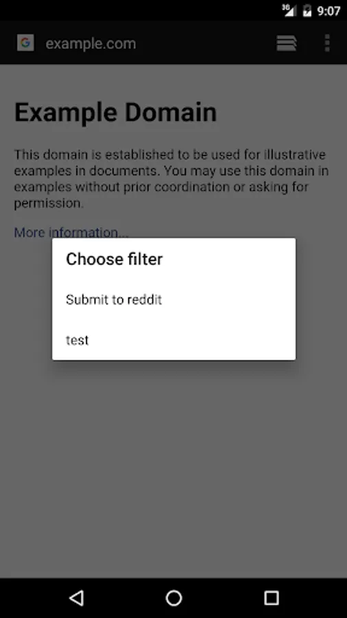For example, say you have a site called "myexample.com" that you want to send to another site called "myshareexample.com". Choosing "Url Forwarder" in the share menu of your browser then lets you pass the current web page you are on to the site you have created a filter for.