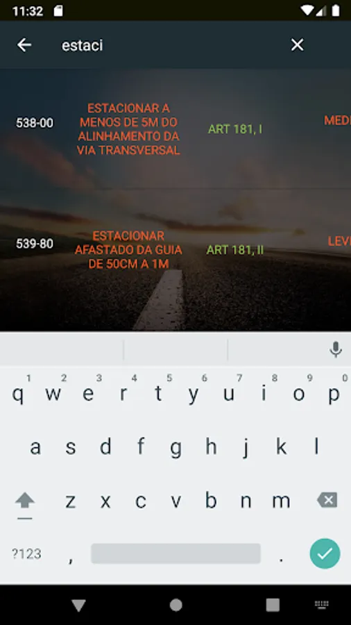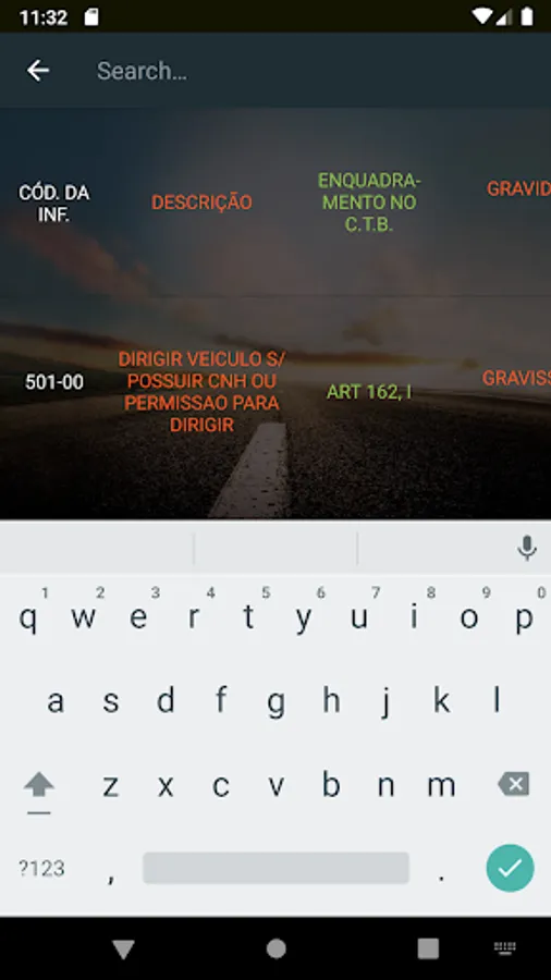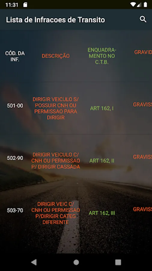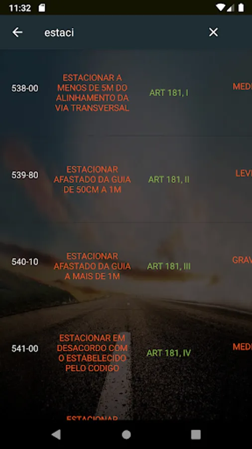 With this application it is possible to consult an infraction by the description, for example: you type in the search field "park" and all infractions with the word parking will be available. It is a professional tool for those who work with traffic and also a good query tool for those who like to be inside.
