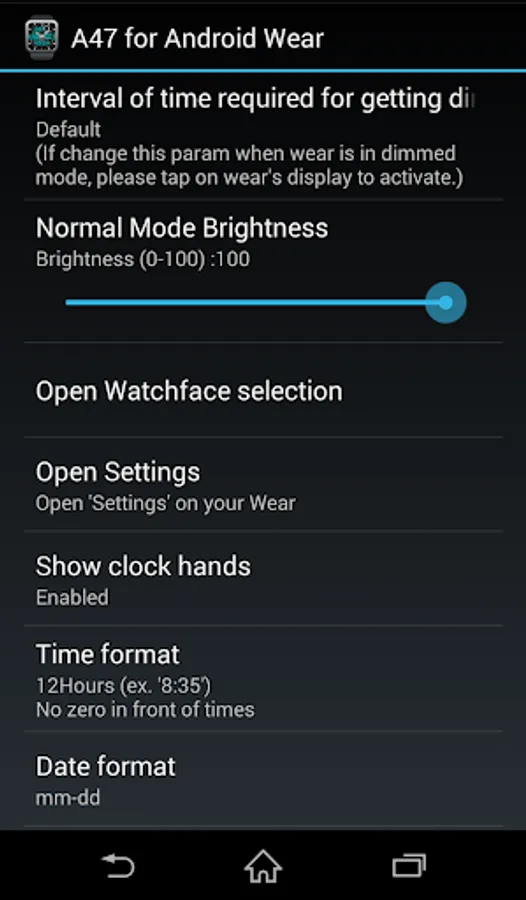 After tapping the icon,you can change settings of A47 from the Android Wear app.