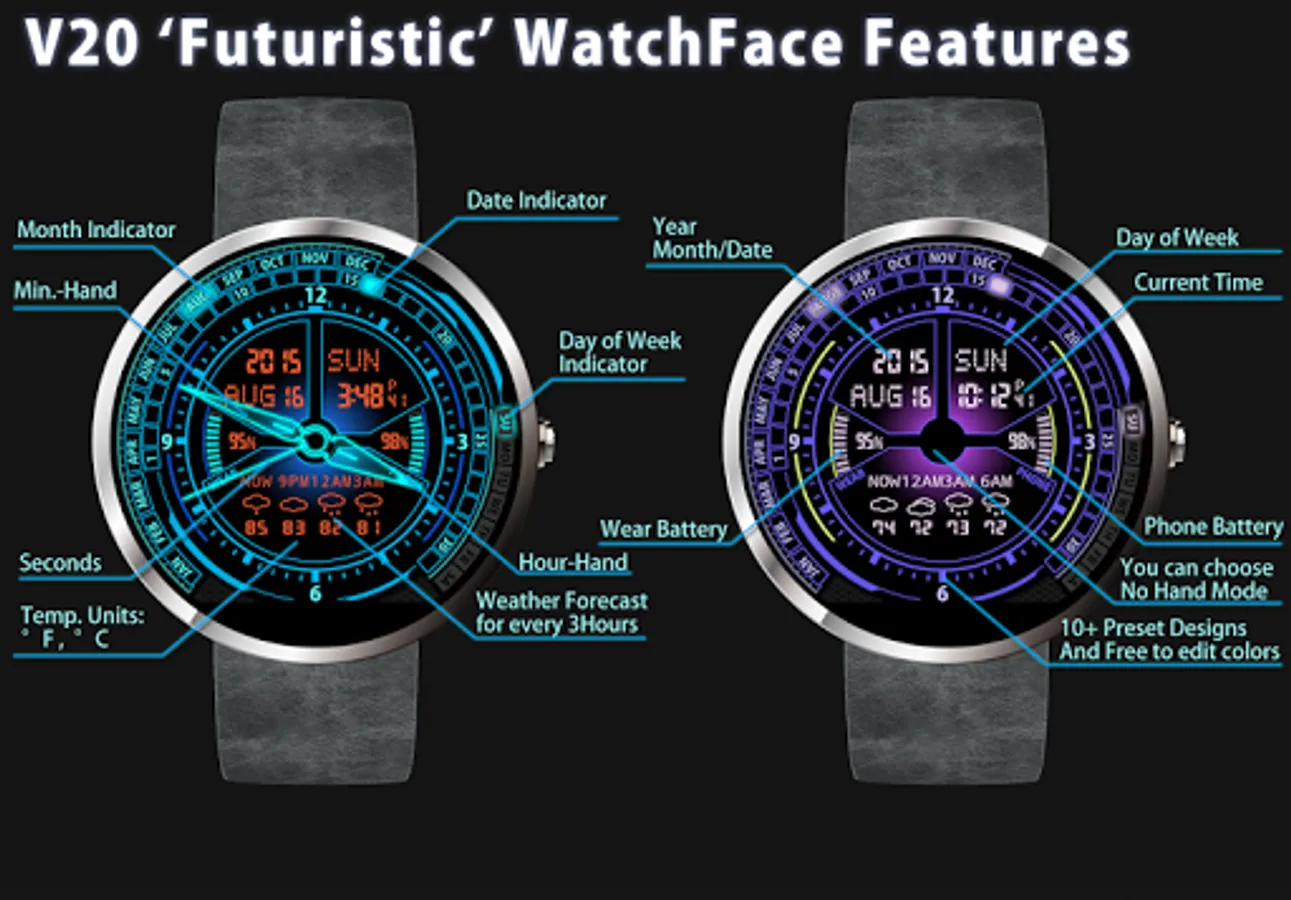 - Visit our exclusive watchface collections for Android Wear on the Play Store