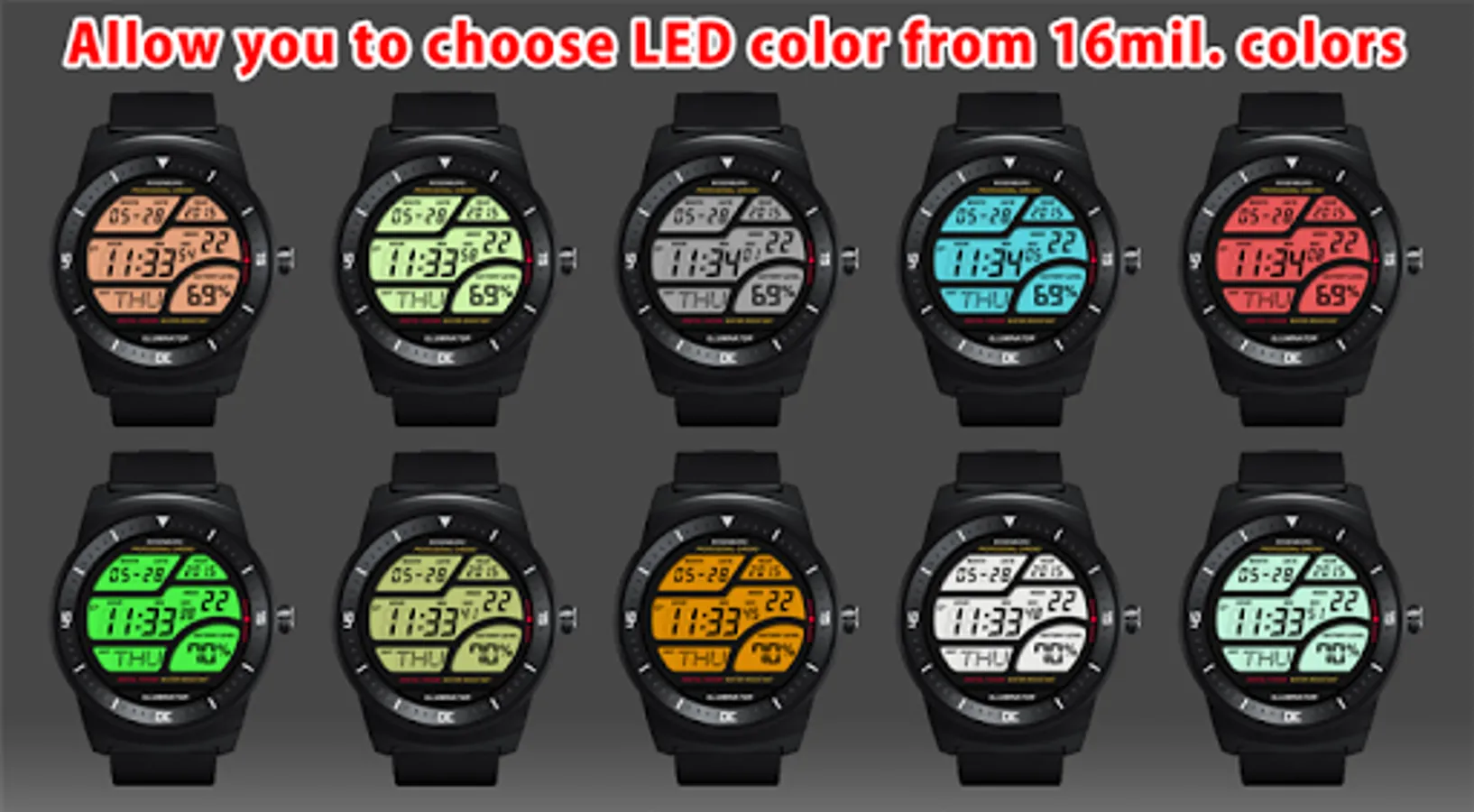 Custom watchface for Android Wear like LG Watch Style / Sport / Asus ZenWatch 3 / Huawei Watch 2 /NIXON THE MISSION / HUAWEI Watch / CASIO Pro Trek / Q Founder / Smart Watch3 / Polar M600 / TAG Heuer Connected