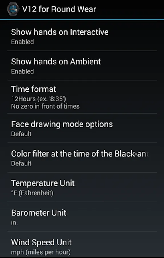 * V12 WATCHFACE MAKES NO GUARANTEE OF VALIDITY OF WEATHER.