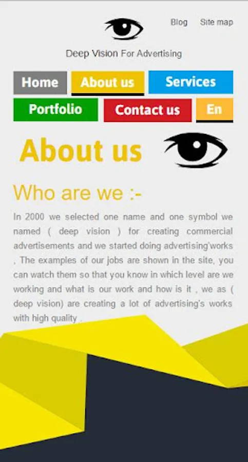 In 2000 we selected one name and one symbol we named ( deep vision ) for creating commercial advertisements and we started doing advertising’works , The examples of our jobs are shown in the site, you can watch them so that you know in which level are we working and what is our work and how is it , we as ( deep vision) are creating a lot of advertising’s works with high quality .