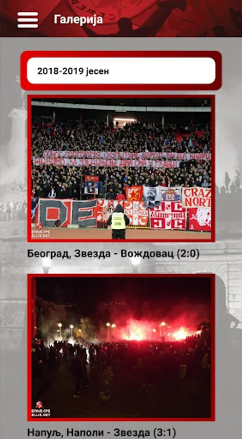 - pregledavanja galerije slika, odnosno albuma sa utakmica kroz svaku od polusezona