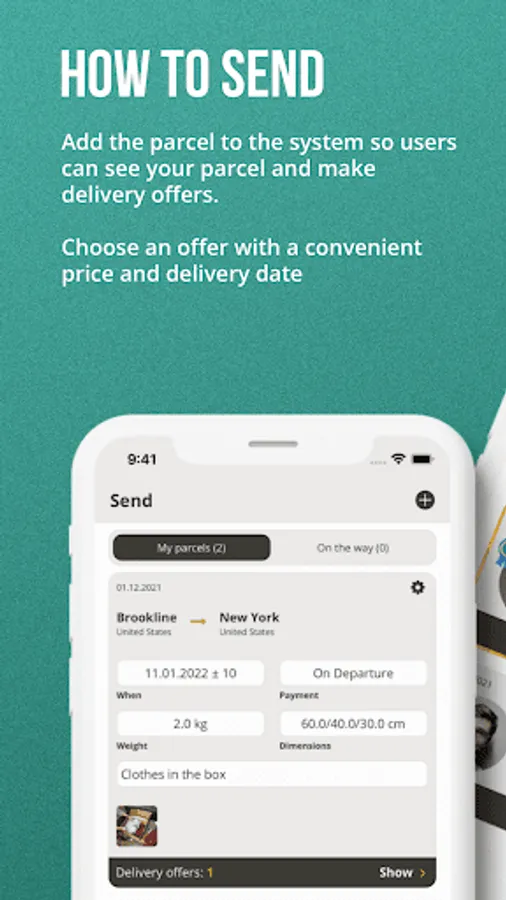 HOW TO SEND A PARCEL. Create a parcel, add a description of the parcel, attach photos, and receive a shipping offer. Choose the offer you like.