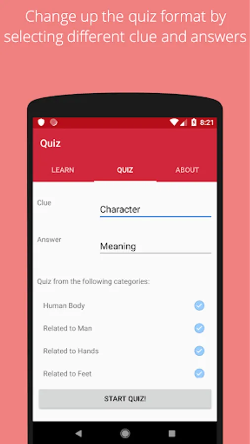 Test how much you remember by quizzing yourself in a flash-card, multiple choice style. Choose the format of clue and answers yourself.