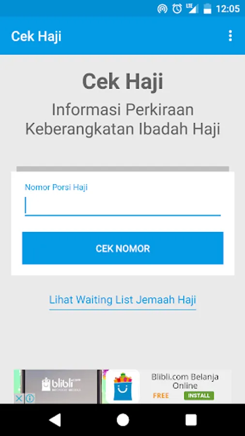 Checks Hajj (Hajj Information) allows you to check the approximate year of departure prospective Hajj pilgrims from Indonesia, both regular and special Hajj (ONH Plus). The estimate is based on number of servings obtained after the registration process performed Hajj.