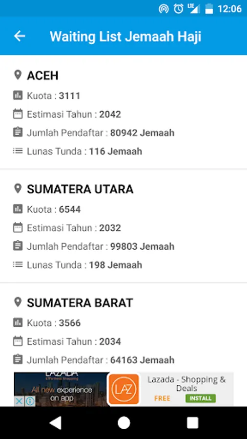 In addition there is also a menu to see the pilgrims waiting list by region (province, district / city).