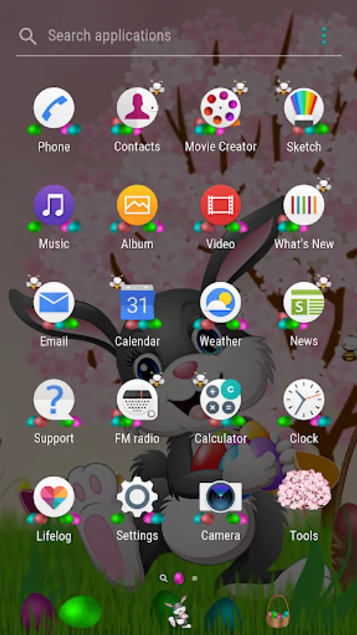 Customize your Xperia™ and other devices with this Easter Bunny Theme. Immerse yourself in high quality live wallpaper, detailed icons, sounds and styled buttons. This colourful and joyful theme will bring the love and happiness in your heart!