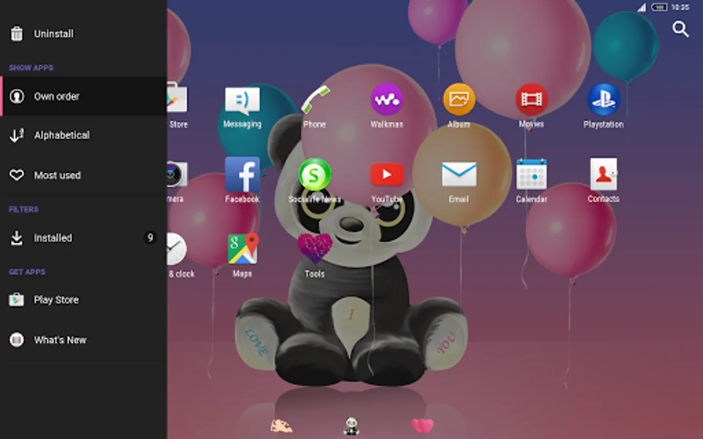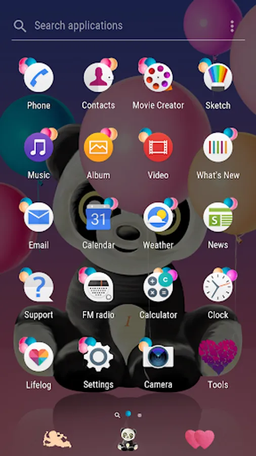 Customize your Xperia™ and other devices with this Valentine's Panda Theme. Immerse yourself in high quality live wallpapers, detailed icons, sounds and styled buttons. This colourful and joyful theme will bring the love and happiness in your heart!