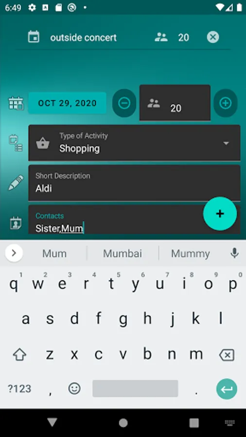 This is a very simple diary app to log social interactions, meetings or encounters for each day.