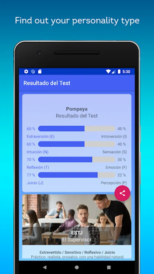 The test consists of a simple quiz, from the answers the result is obtained to determine what your personality type is.
