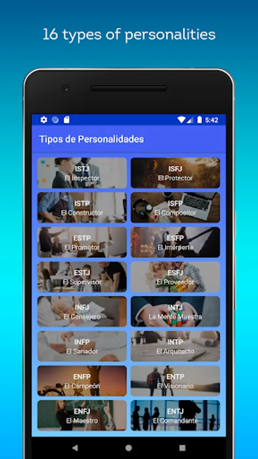 Each personality type has its detailed description with all its traits and characteristics, as well as affinities with careers or jobs to be done, it is very useful to know your vocation for work or for employers who are looking for the right person.