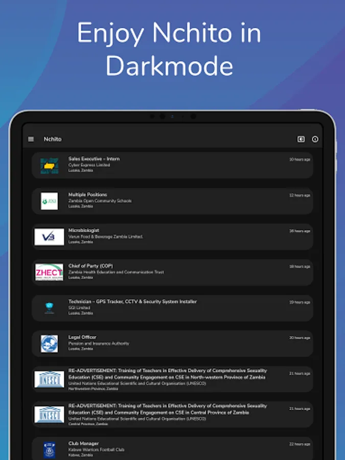 Nchito features open jobs in Zambia. You can easily filter jobs by their category or job function or by job type, i.e full-time, part-time, e.t.c and easily apply for jobs via Email or career portal.