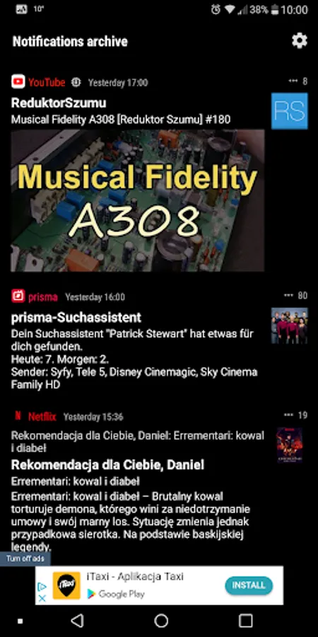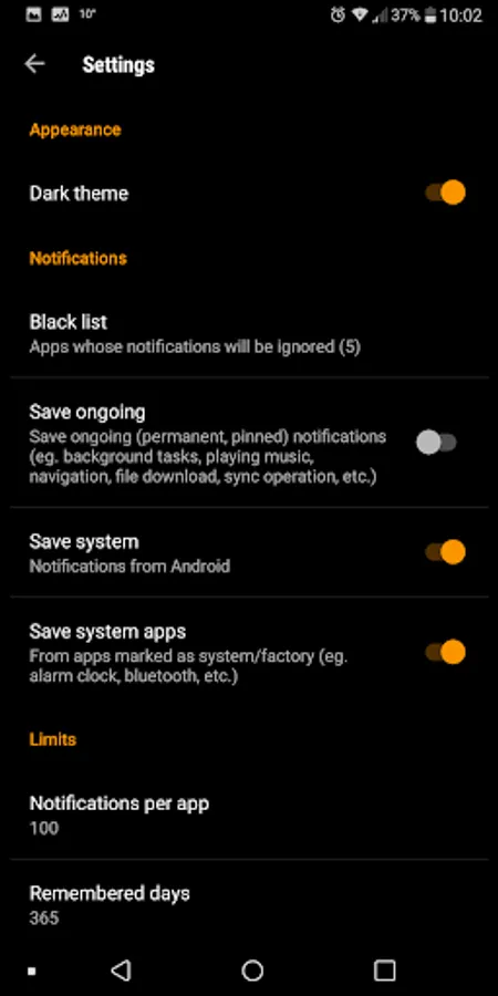 The archive remembers notifications, grouped by application (including system applications). You can filter / ignore applications (longer press).