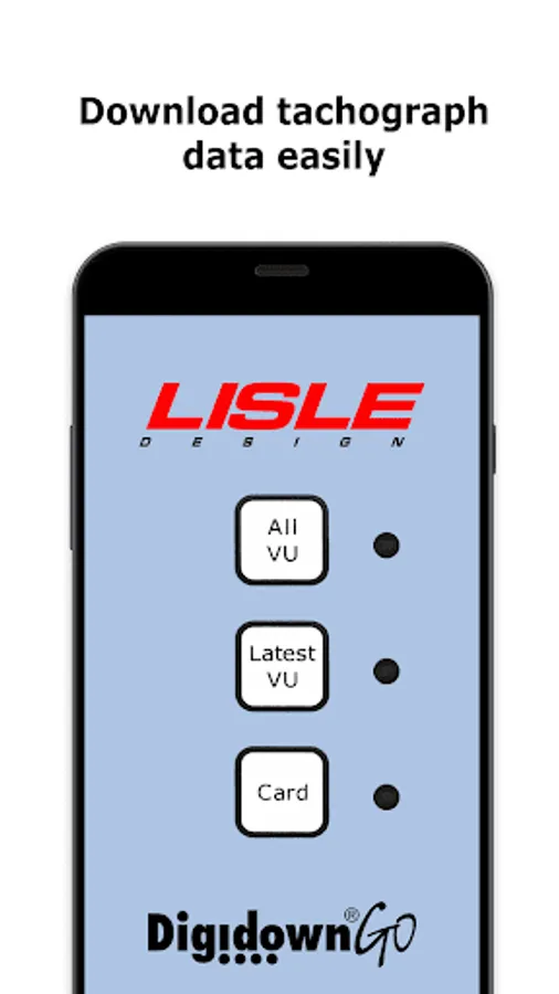 Use the Digidown Go application with companion Digidown Go cable to easily download data from Digital Tachographs. Visit lisledesign.com for details.