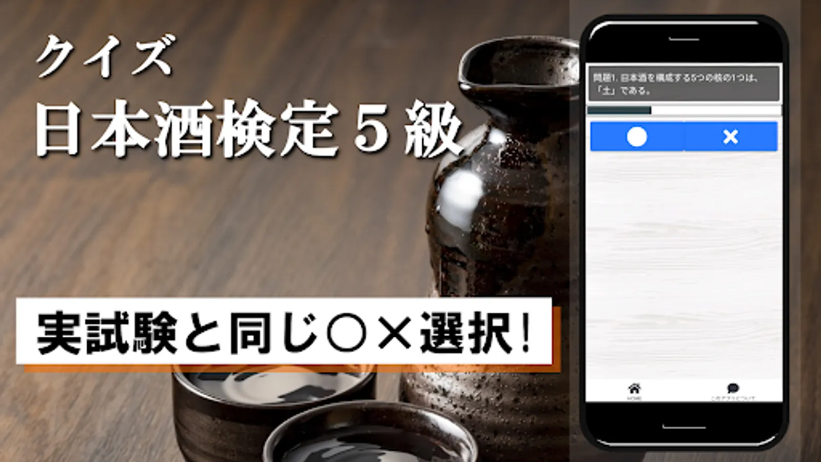 実際の「日本酒検定5級」と同様、○×形式のクイズになっていますので、このアプリひとつで試験対策はばっちりです!