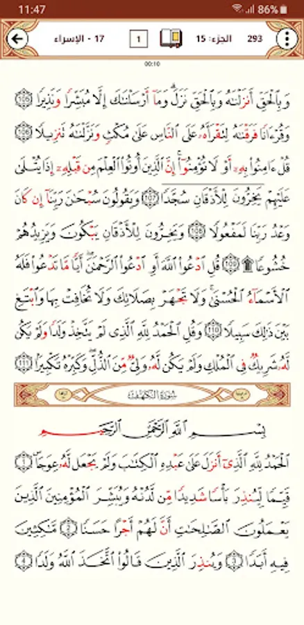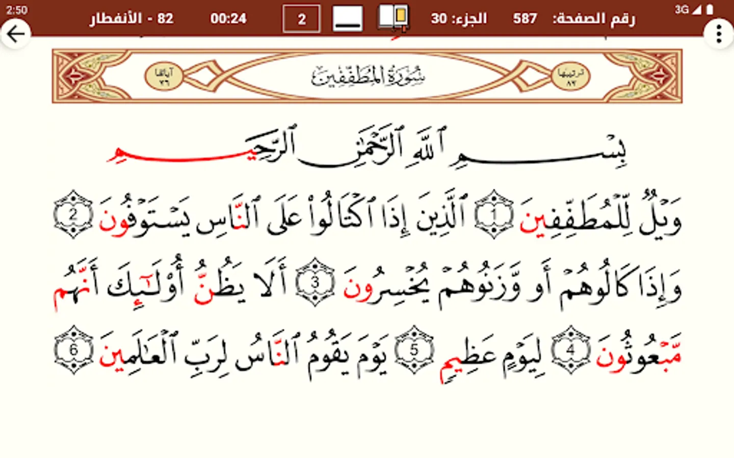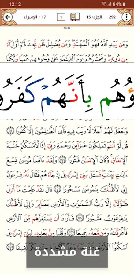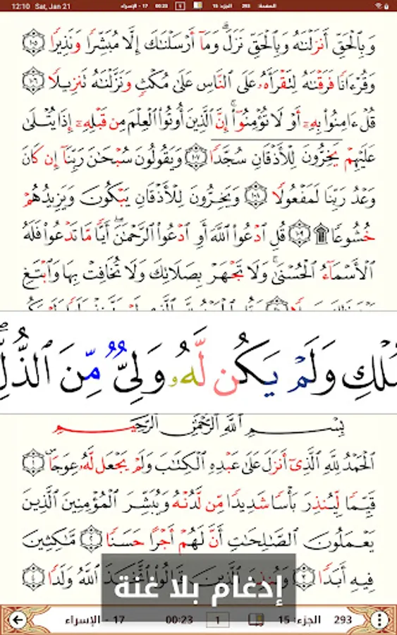 • View the Tajweed of intonation with color indicator for each hukum. When clicking on the intonation rule, it will show the type of ruling.