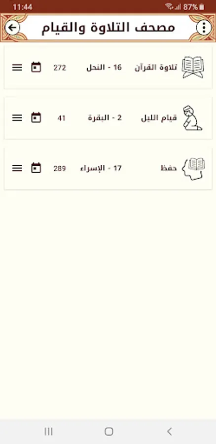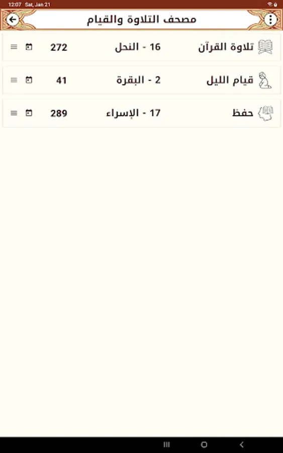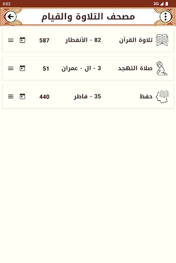 • Achievement and Motivation Tracker: This is an important tool for tracking daily or weekly goals. Both achievements and failures are recorded. Then the failure can restored (قضاء).