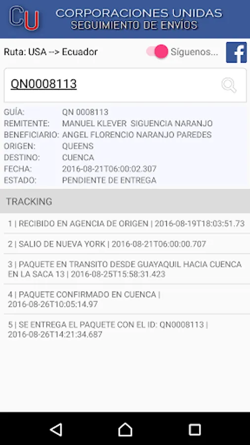 Introducing the official app of United Corporations - Courier & Cargo, as a simple communication channel to check the status of their shipments from USA to Ecuador and vice versa.