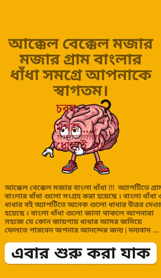 বাংলা ধাঁধা গুলো জানা থাকলে আপনারা সহজে যে কোন জায়গায় ধাধার আসর জমিয়ে ফেলতে পারবেন । সময়ের প্রবাহে বাংলা ধাঁধা আজ হারাতে বসেছে। এখনই সময় সেই সব অমূল্য রত্নগুলি আগামী প্রজন্মের জন্য তুলে রাখার তাই আমাদের অ্যাপটি ডাউনলোড করে মেতে উঠুন ধাঁধাঁর জগৎ এ । মজার ধাঁধা ও ধাঁধার উওর সহ সুন্দর ভাবে তুলে ধরা হয়েছে ।