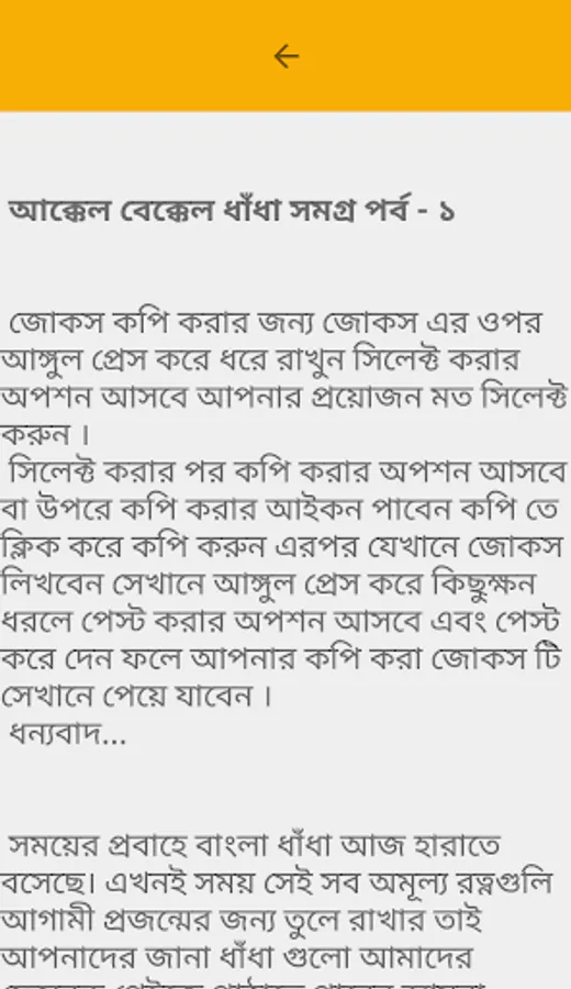 AKKEL BAKKEL BANGLA DHADHA: বাংলা ধাঁধা অ্যাপটিতে গ্রাম বাংলার ধাঁধা গুলো সংগ্রহ করা হয়েছে । বাংলা ধাঁধা ও ধাধার বই অ্যাপটিতে অনেক গুলো ধাধার উত্তর দেওয়া হয়েছে ।