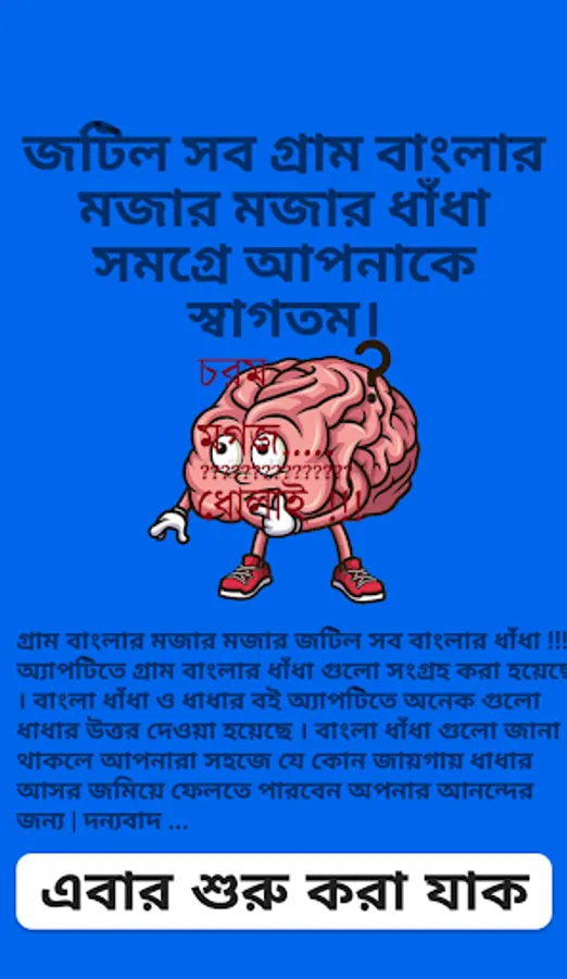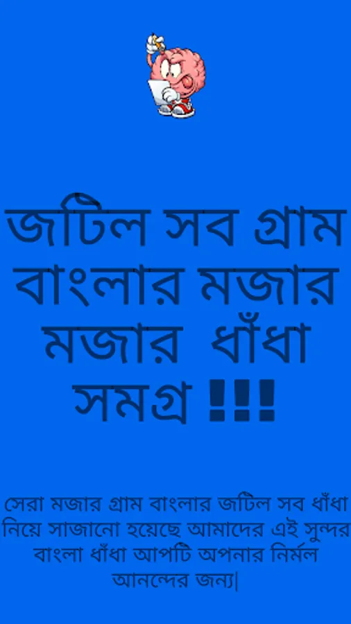 বাংলা ধাঁধা গুলো জানা থাকলে আপনারা সহজে যে কোন জায়গায় ধাধার আসর জমিয়ে ফেলতে পারবেন । সময়ের প্রবাহে বাংলা ধাঁধা আজ হারাতে বসেছে। এখনই সময় সেই সব অমূল্য রত্নগুলি আগামী প্রজন্মের জন্য তুলে রাখার তাই আমাদের অ্যাপটি ডাউনলোড করে মেতে উঠুন ধাঁধাঁর জগৎ এ । মজার ধাঁধা ও ধাঁধার উওর সহ সুন্দর ভাবে তুলে ধরা হয়েছে ।