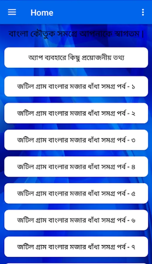 JOTIL BANGLA DHADHA : জটিল সব গ্রাম বাংলার মজার মজার ধাঁধা। বন্ধুদের আড্ডা মানেই গান, কৌতুক, হাসি-তামাশায় সময় কাটানো। কিন্তু এই আড্ডার মাঝেই যদি একটু বুদ্ধির লড়াই হয়ে যায়, তাহলে সময়টা হয়ে ওঠে আরো উপভোগ্য। বুদ্ধির লড়াইয়ে বন্ধুদের হারিয়ে দিয়ে হয়ে ওঠো আড্ডার মধ্যমণি। বাংলা ধাঁধা অ্যাপটিতে গ্রাম বাংলার ধাঁধা গুলো সংগ্রহ করা হয়েছে । বাংলা ধাঁধা ও ধাধার বই অ্যাপটিতে অনেক গুলো ধাধার উত্তর দেওয়া হয়েছে ।