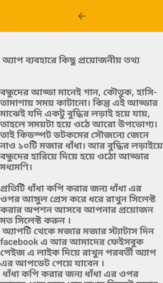 বাংলা ধাঁধা গুলো জানা থাকলে আপনারা সহজে যে কোন জায়গায় ধাধার আসর জমিয়ে ফেলতে পারবেন । সময়ের প্রবাহে বাংলা ধাঁধা আজ হারাতে বসেছে। এখনই সময় সেই সব অমূল্য রত্নগুলি আগামী প্রজন্মের জন্য তুলে রাখার তাই আমাদের অ্যাপটি ডাউনলোড করে মেতে উঠুন ধাঁধাঁর জগৎ এ । মজার ধাঁধা ও ধাঁধার উওর সহ সুন্দর ভাবে তুলে ধরা হয়েছে ।